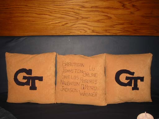 Neisha and Anne crafted three GTUTV custom pillows for our seating areas. Thanks ladies!